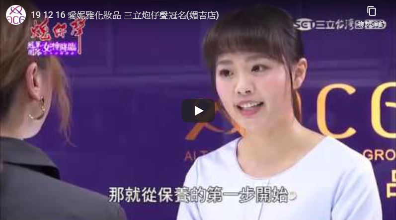 【女神在線-Ep38】凹豆咖小愛和小豬熱愛戶外運動!!回家後一個狂擦保養品一個狂洗臉!?【相關連結】 女神在線FB h… 20 6 月, 2022 【三立台灣台】愛妮雅化妝品-炮仔聲冠名NewShowBiz完全娛樂:… 7 1 月, 2020 【大愛新聞】丈夫成植物人不離棄,眾人助圓婚紗夢!這是一段堅定不移的愛情故事,丈… 16 12 月, 2019 【感謝「金炬獎」的肯定,愛妮雅榮獲雙獎】總是支持著國內創新發展,「企業… 9 12 月, 2019 【堅持理念,愛妮雅再度榮獲玉山獎肯定!】40多年來,愛妮雅用心帶給大家… 12 11 月, 2019 Load more